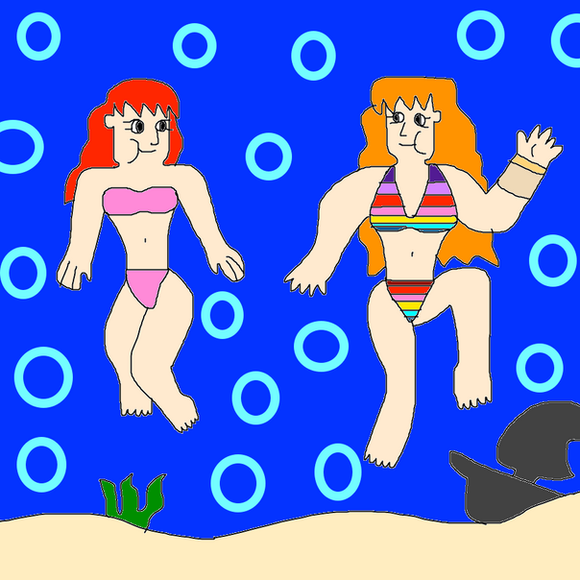 My first commission forHis OCs Greer and Isabelle under the sea in their favourite swimsuits.