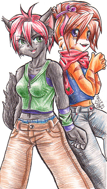 This is just a sketch I did, and then quickly colored. A five minute sketch, but I think it turned out alright. Perhaps I should write a short comic about Flora and Trace in the modern world? It might be interesting.....Related content