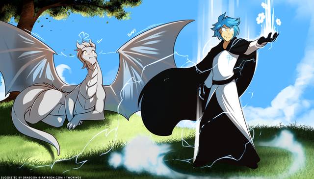 I have white wyvern dragon character, Captain White Storm, an elite corps of Draconia's peacekeepers, called Thw Storm Guard... this would seem the typical mess she usually is involved in. I love this pic!