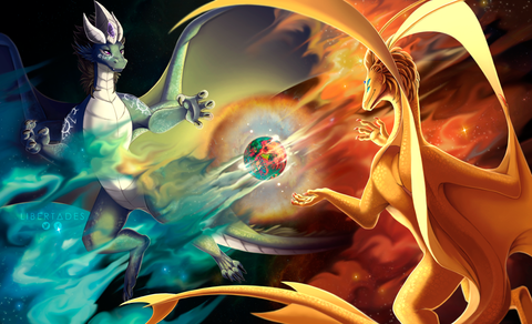 Head canon is now that they are on a future version of earth where more than have the population has been genetically changed. The dragons are actually giant mobile computers with the ability to control the attack satellites that are in orbit.