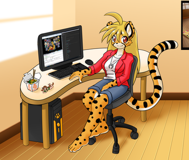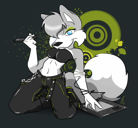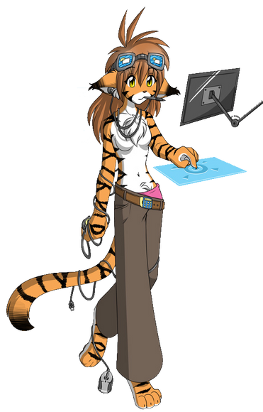 Oh man! This drawing was originally an unfinished sketch I drew sometime around 2004. I recently found it amongst a pile of random drawings and thought I might as well finish it. I didn't change anything significantly, save for the background, so you'll probably notice that the style is pretty different from how I usually draw. The hair, the body proportions, etc are all from my old style, though it's cleaned up quite a bit with the new line art. The stripes are new, but everything else I kept as much the same as possible.The screens in the background were all added at the last minute, just so that there wasn't quite so much white space. The charts and graphs are all random and have absolutely no secret meanings... OR DO THEY?