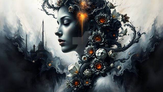 #abstract #beauty #contrast #dark #floral #magic #portrait #reflection #wallart #wallpaper #4kwallpaper