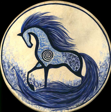 This is beautiful, a dynamic and spiritual work. I love the colours you've chosen, and the stark pose of the horse.