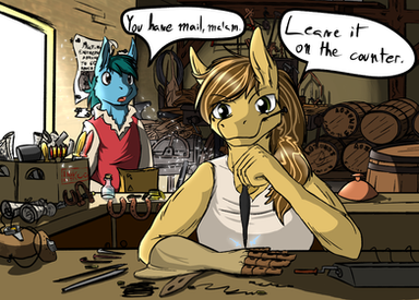 it is one commission I start some time ago. This pony homless but she found new frind this way and he sheltered her in his new house :3