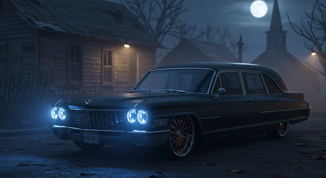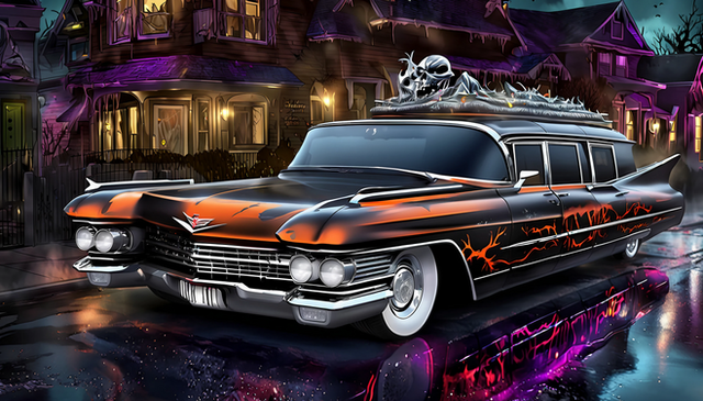 #photography #car #digitalart #horror #surreal #vintage #vehicle #ai #cadillac #halloween #hearse #moon