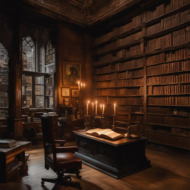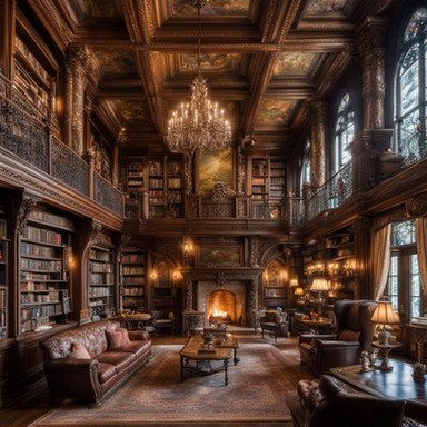 The manor library of a noble, perfect for quiet nights with a warm fire and good book.