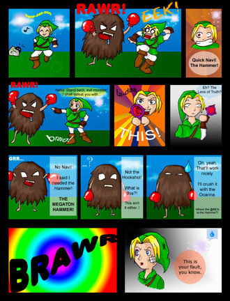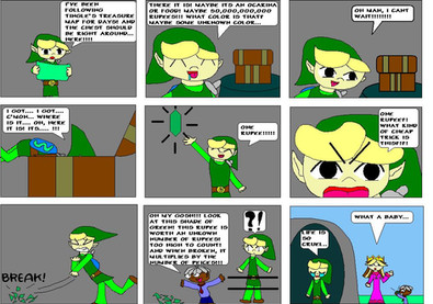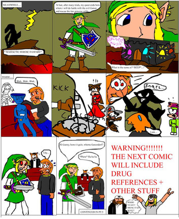 This is the illistrated version of the Random Fan Fiction for zelda, a group project written in January 2004 by no less than five authors.The page of the comic was originally written by Alian Gishwylion on December 31 2003.