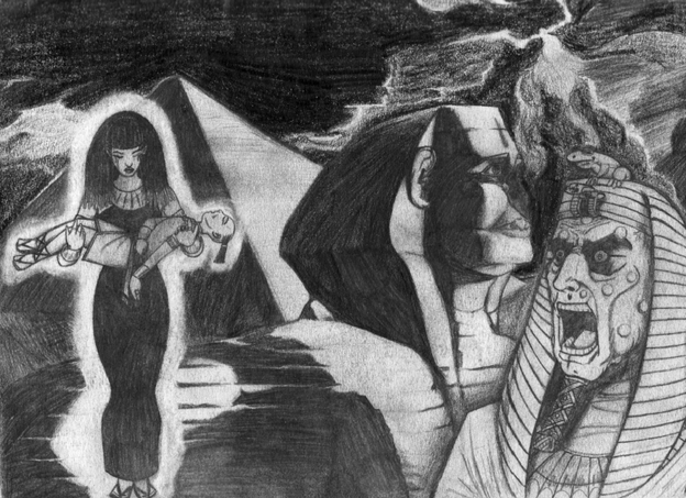 Completed on Thursday, 22 October for #drawtober2020 using: a Pentel Twist-Erase GT 0.5 mechanical pencil for the shading and the underdrawing; a Pilot G-2 07 gel pen for the outlines; a black fine point Sharpie permanent marker for the background; Pentel oil pastels for the blood spatter; and Photopea (a free online Photoshop clone) for the lettering.