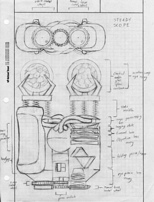* Oy vey, the "liquid crystal particle lens [sic]"... Terribly sorry about the misspellings. This was done in 2004, and I've gotten much better at spelling since then. Also: yeah, I know the "liquid crystal" concept has nothing to do with particle beams. I was worse at technobabble than the writers of "Star Trek: Voyager". Had I drawn this today, I would have simply referred to this part of the device as the "focusing lens".