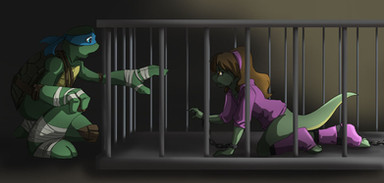 I wanted to draw Mona Lisa again. That's all this was. This is from the fanfic I'll never do.Don and Mona are being hunted. They're separated from Mike and Leo and believe Raph is dead. Don lost his bo, all he has to fight with is one of Raph's sai. Mona's newly mutated and is still pretty weak. If they're found, they're pretty much dead.