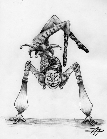 This commission was actually ty-ping's initial idea (a "circus performer"). After commissioning our previous piece of the punk lizard girl I got to thinking and realized her idea was good and suggested a snakelike contortionist. Once again, ty-ping was really creative with the concept and created this beautiful piece.