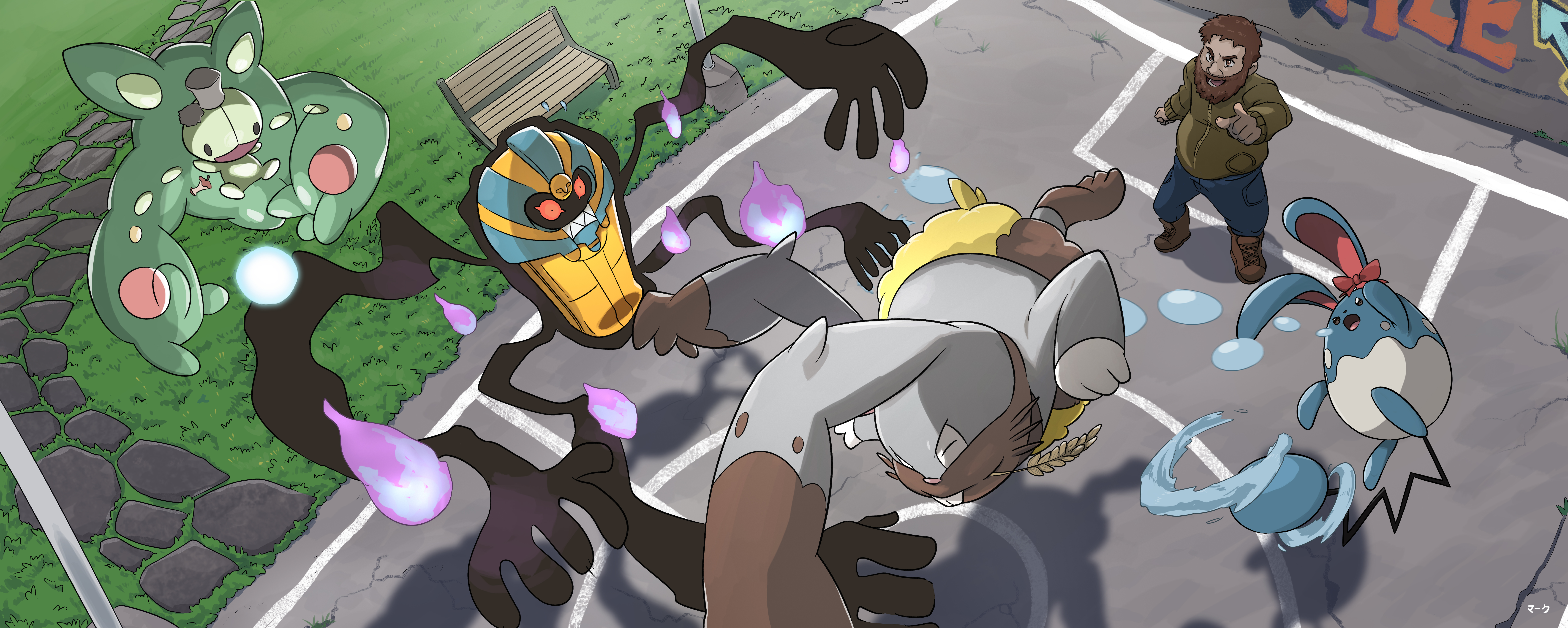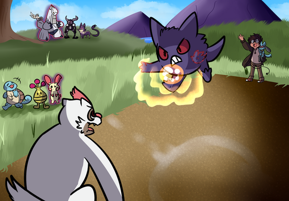 David sends out his Furret and Ty sends out his rather intimidating looking Slaking, this wasn't a Slaking that liked loafing around, it wanted to fight and as soon as Ty gave it the word, it leapt into the air with the intent to hit hard, bring its fists down on the ferret pokemon is a powerful hammer arm.
