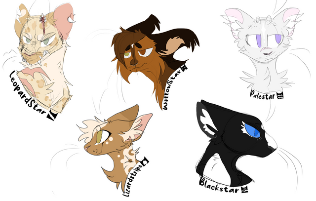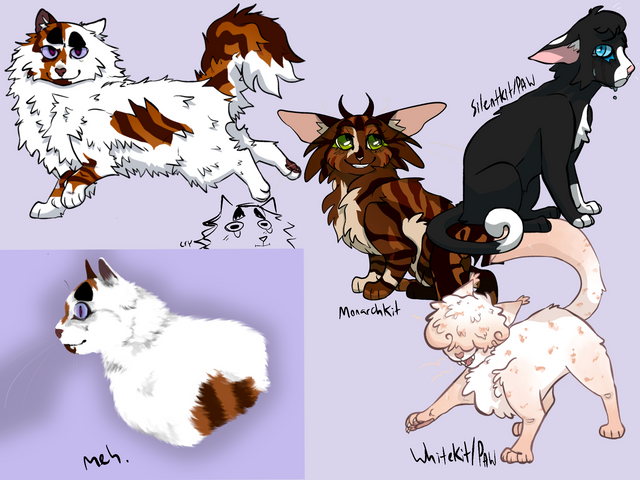 Ghostly-Galleon dragged me back into warrior cat rps so I doodled a bunch of ppl’s cats from WithinTheValley to get a better handle on my cat artstyle
