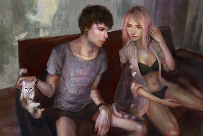 Such a cute painting! I love the moody lighting, it solidifies the feeling of intimacy between the girl and her cat. Really sweet, nice job. (-: