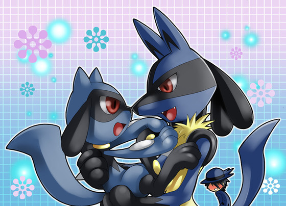 Very cute; that poor Lucario looks like it has it's hands full with those two.