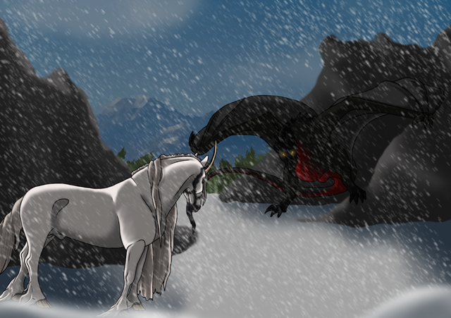 #dragon #headshot #horse #literature #magic #red #snow #snowstorm #anomalouschronicles