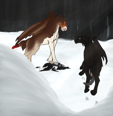 The momentary solace from the snow only lasted a moment. As soon as the scale was offered and the dragon raised, storm clouds bounded overhead and the snow followed soon after. Casia stood frozen on the spot for, as far as she was concerned, an eternity, staring at the egg resting in front of her. What was it? Well, apart from the obviousness of it being an egg. The maer took a weary step forwards, bending down to give the opalescent shell a sniff. As soon as she did, however, the egg began to shake. Cracks began to appear on the surface. Taking a violent leap backwards, Casia watched almost in horror as the egg broke. She wasn’t ready to be a parent! She knew nothing of scybillines! What did they eat? Would she have to hunt bugs? What types of bugs were safe to eat? Were some poisonous? Maybe Scybillines ate fish… would she have to learn how to fish? How would she keep a scybilline child warm? And for that matter, how did one play with cubs anyway? How did you teach one to talk and to defend its self? She was too young to have to deal with these types of questions. Of course, she had considered having children of her own one day, but that was maybe in three to five years. Definitely not right now! Oh Acteaos, where was Nym? Maybe if she picked up the egg and ran she’d be able to find her older sister in time. She’d know what to do. Yeah. That’s what Casia would do. Pick the egg up before it hatched and give it to Nymeria. Casia was fast, she’d surely make it on time.