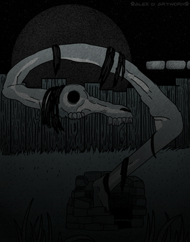 Fan art of my favorite of Trevor Henderson’s (SlimySwampGhost’s) incredible monsters, this is Long Horse. Long Horse is a portent of bad things to come for any who see the entity in their dreams - but the creature doesn’t cause them. Instead, it seems to be trying to warn those it appears to. LH can’t speak - instead the neck bones inside its mummified exterior crack & snap with more frequency & urgency as its warning becomes more dire.Procreate - 4.5 Hours