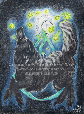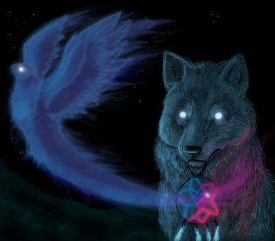 My half of a trade with . The ferret spirits are those of two of her dearly departed furry friends, most recently to cross the rainbow bridge.Love you, Nanakyi... I hope things get better.