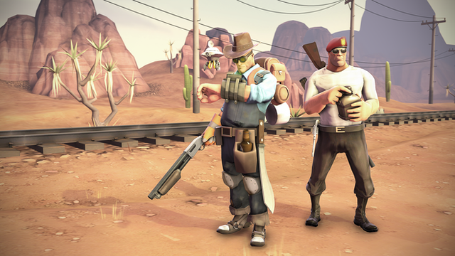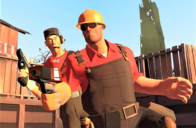 Funny I'd have thought Engineer would be shooting Soldier in the face for stealing all his cool gear that should be rightfully his.