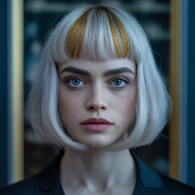 #portrait #photography #beauty #digitalart #portraitgirl #makeup #magic #glamour #portraitphotography #photorealistic #blacklips #blondegirl #platinumblonde #goldenrobe #goldenaccent