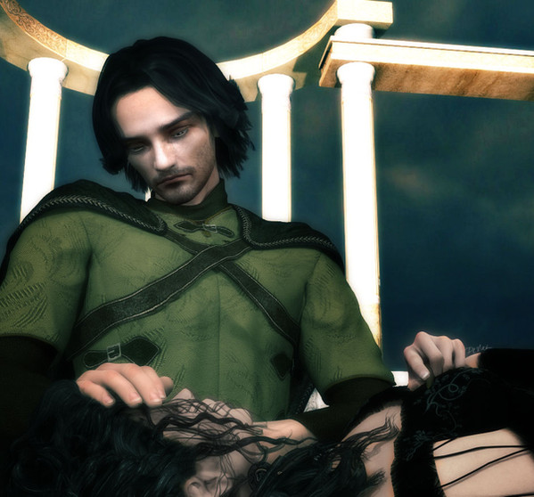 Previously, Sumara was whoopin' on Ender's ass. But she detected something in him she had rarely encountered: compassion. Sparing his life, she took him back to her place of solitude where she tended to his wounds. Later in the evening, when he awoke from his unconscious state, Ender was greeted by Prince Poseidon and Sumara who explained why she attacked him and why she was forced to live in isolation for decades. The following morning, Ender and Sumara are taken back to Atlantis to protect them from the Morrigan who now knows Sumara has survived a centuries old purge.Daz Studio-Iray/Photoshop