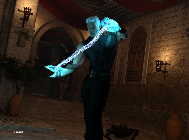 That's a very cool magic effect. I love how the light reflects off Ender's wet skin.