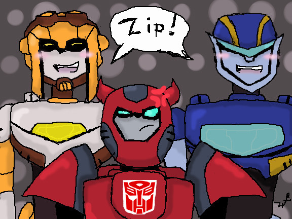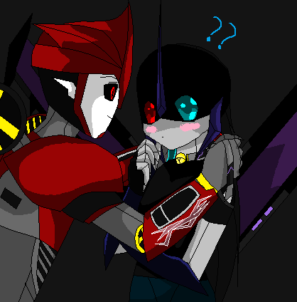 BACKSTORY: So they are fighting randomly in space, cause that's what Transformers do. But it was more like a ginormous brawl between the remaining Starscream clones not in captivity and some of the Elite Guard. Jetstorm gets set up to fight Slipstream, of course. She kinda flirts with him a bit and makes him feel uncomfortable (got this idea from one of 's stories XD) . He lets down his guard and she sneaks behind him and shoves the null ray in his face. Ouch. In the end, somehow, he will win though. Because hes a Jettwins of course XD They ALWAYS win.