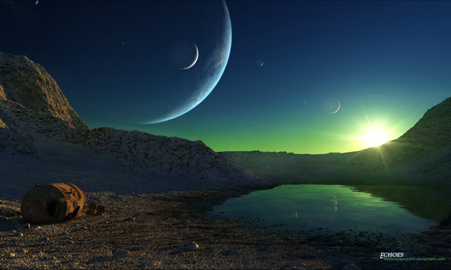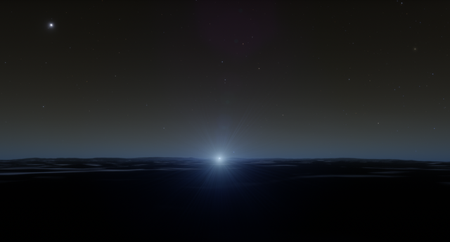 My only advise is: cut the light of the littlest star, because it seems to be between the mountain crests insead of behind the planet.