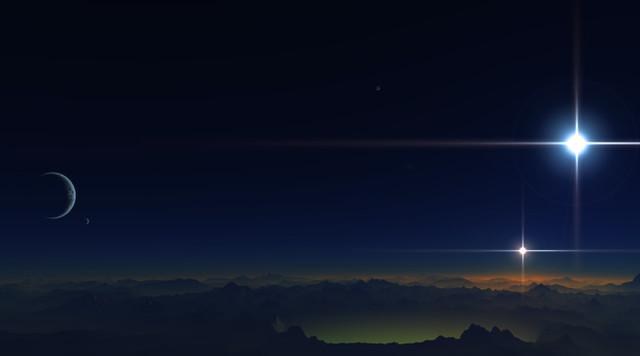 Yeah, its one of the moons of the planet. Its not supposed to be earth, despite the similar apperance. As for the lighting on the planet. Your right, it should be dark. I've found that having a completely dark side of a planet thats against a background thats not black causes too much of a contrast and can be a distracting part of the picture. So my excuse is simply ambient light from the surrounding star is lighting the dark side. Though I will darken it a touch more to make a little more realistic. Thank you very much for your critique. I always enjoy them.