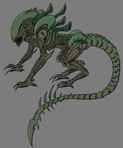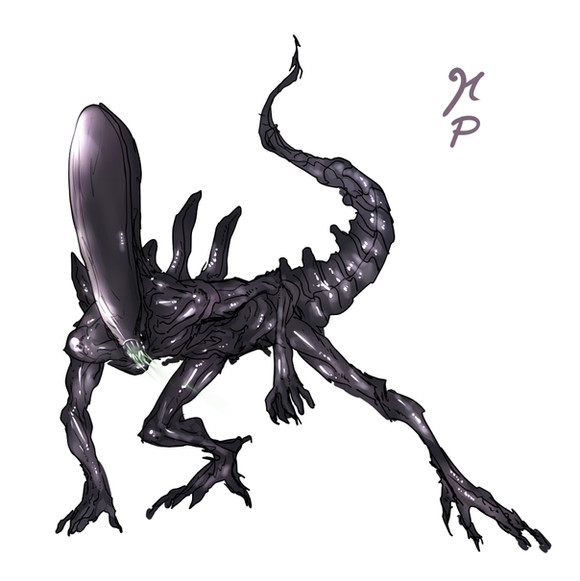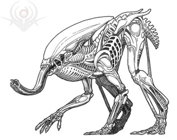 Yer I would have loved it to have been the ox instead of the dog, or perhaps both (further contrasting the different "styles" of the xenomorphs). I love this pic and you comment has inspired me to do a massive bison-esque alien. Good Work.