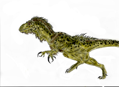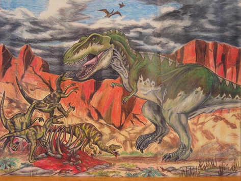 Beautiful colors and I love that spiny mane on the Tyrannosaurus.