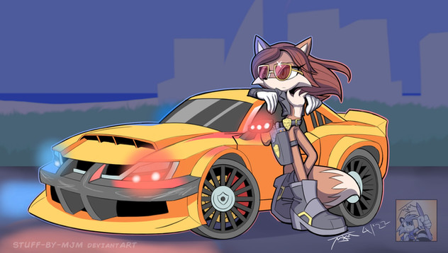 "Aw yeah! The track is in excellent condition. Is your car perfectly tuned?" Ridge Racer commission for Svana _fenner with her Soldat Raggio ^w^