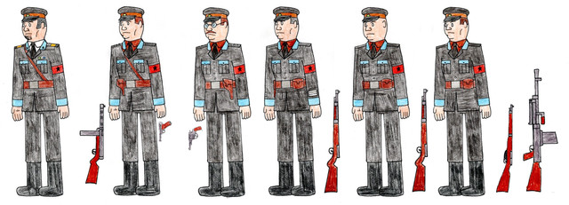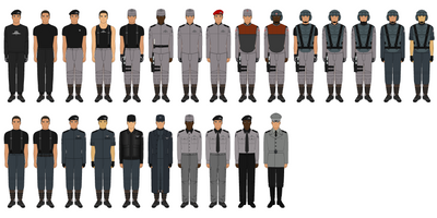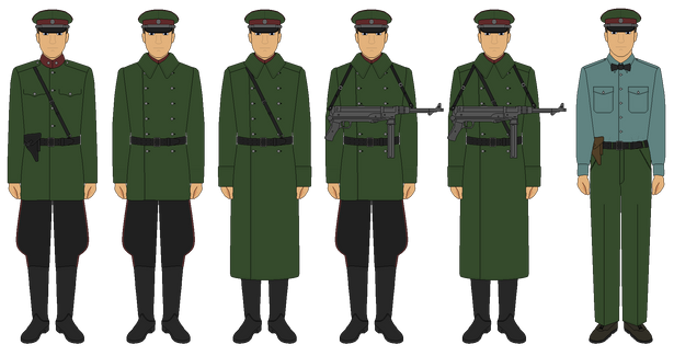 Fictional Japanese uniforms from the 1999 anime movie 'Jin-Roh: The Wolf Brigade'. Set in a setting where Germany won WWII and bombed japan with nukes in the same way as the US did in history.