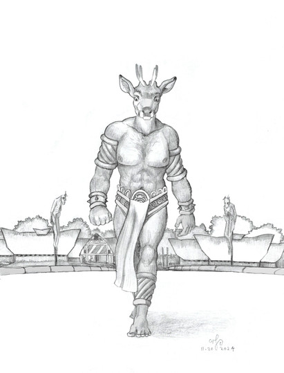 Before reading this I thought he was supposed to be an anthropomorphic kangaroo. Otherwise I like the soft shading and amount of detail you put in it, the composition looks very nice too I only don't like what you did to the muscles, in particular, the part on the right under the left arm.