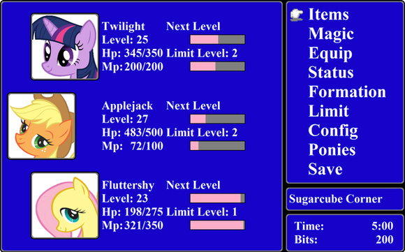 Even I know it's unfinished and old, I like what you did here! Even I never have played Final Fantasy games myself, I enjoy watching playthroughs of them. However, I DO play RPG games with MLP ponies on it such as EquestriaBound.