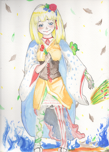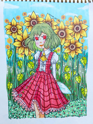 #dress #fanart #girl #green #ink #macross #ranka #summer #sunflower #traditional