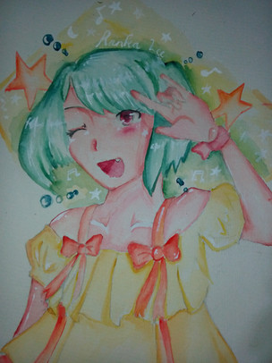 My boyfriend likes Ranka and Macross so I did this for him. I also had a lot of yellow ink that I wanted to use.私のかれしはランカとマクロスが好きだから、かれしに絵を書いてあげました。もう、多く黄色インクを作たいでした。