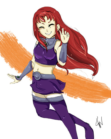Starfire sembra proprio così carino! Ah ho appena piace vedere la tua arte quando lo metti su. Finalmente ho avuto un pezzo di mia arte teenager Titan finalmente. Non vedo l'ora per la scuola ad essere più allora posso davvero arrivare a disegno.