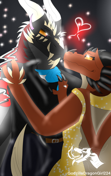 Hi. Sorry its been a while, but again I've been busy. College stuff and all.This thing was supposed to be one thing but turned into a whole big thing. It was going to be just Mothra, but then uh, Godzilla came in. I based it off that one dress thats popular on Twitter. sta.sh/013pcpldfjky Godzilla's suit is actually based on a suit I saw at the mall lol. So this turned into a Mothzilla thingy. I actually do that a lot. I did start working on this before GxK came out so I wasn't inspired by that to make this. Because of that movie, the ship kinda came back into the light because of the small interaction Goji and Mothra had. Tbh it did somewhat also make me think about them more. I'm starting to like, like like the ship. Of course it wasn't anything big, they simply just looked at each other. It was kinda sweet though.