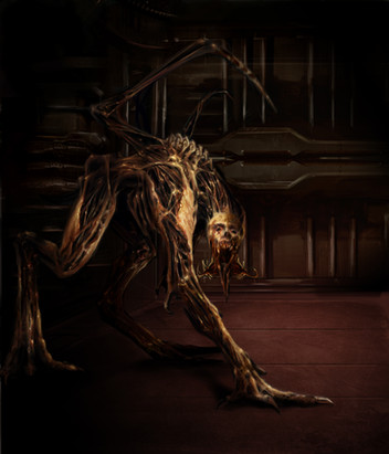thats cool - looks v resident evil with the red tube/flesh parts poking through. could totally imagine this jumping out at you in Doom3 .... maybe concept for Doom 4!!!