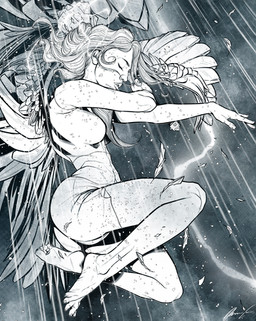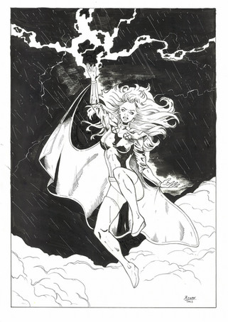 I get many private messages asking about my technique and process. I still begin each piece with a traditional, hand drawn and inked sketch. This is the piece I used as the base for the final paints on my recent Storm piece. During the painting process, I tend to eliminate certain areas of the line art with color to achieve a more painterly style. Hope you like it. If anyone has any questions, feel free to shoot me a message or comment below!Related content