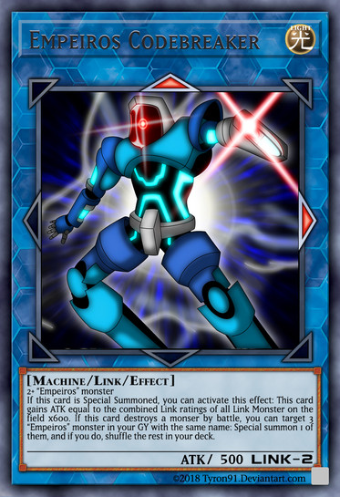 Here I go with s new link monster "Empeiros Algorithmic Encoder ". And well, I don't have much to say. I was in a sort of artist trance that I had drawn 2 cards at once today. But its not all. I am about to redraw some of my old "Machine Emperor" or more known as "Merklord". I cant go into the details yet, since it is a work in progress, but thats something you can look forward to