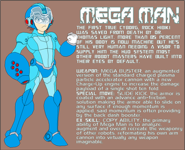 Another member of the "rock band" known as Count Zap and the Go-Goons, another result of weaponizing a stolen experimental device by Dr. Wily. This time it's a time-freezing device, it's intended purpose is unknown but now it serves as Flash Man's primary combat capability. Being able to stop time for a few moments, Flash Man has become a bit of a cheap bastard. In fact his very identity revolves around dirty fighting, he never plays fair and will use his power to cheat his way to victory. Unfortunately for him, the time-stopping device he was created from uses up a lot of energy at a time and requires some time to fully recharge. Then again, he still fights dirty even without his time-stopping powers.