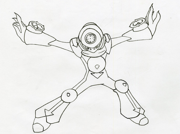 Not much going on here, I mostly turned his arm cannon into the very time-stopping aparatus he uses.