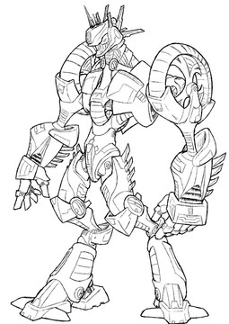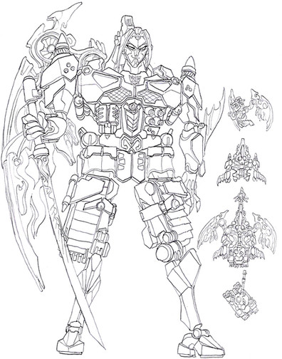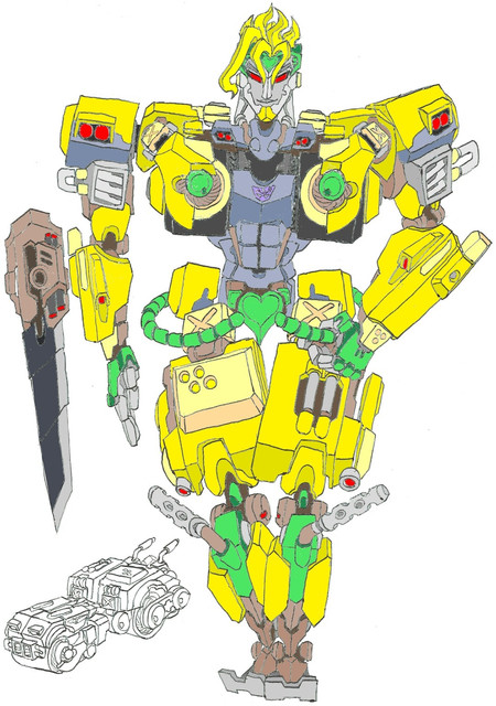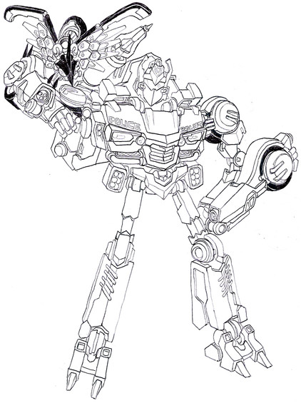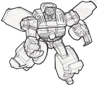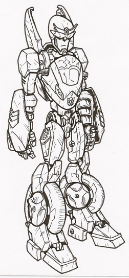 Yes, that is Cykill. I know he pales in comparison to the likes of Megatron but, I don't know, just something about his design as a transforming robot (or cyborg or...what the fuck ever) appeals to me for some reason. Of course by Transformer name standards, "Cy-Kill" is kind of a shitty name so I decided to change it to "Overkill", not much of a change but hey gotta stay true to the original design right?He used to be leader of the Renegades, a seperate faction of Cybertronians that had a vicious blood rivalry with the Decepticons, but once Megatron became leader of the Decpticons, well, the Renegades were forcefully (and brutally) disbanded. Now the defeated Overkill serves as a Decepticon, much to his disgust. Both Overkill and Crashcourse (Crasher) [link] serve directly under Soundwave [link] as his elite enforcers, as such they too possess alt. modes that are actually police unit vehicles. Overkill here transforms into a police issue three-wheeler vehicle that frankly is quite large for a motorcycle vehicle.