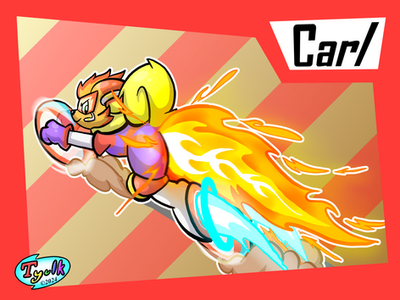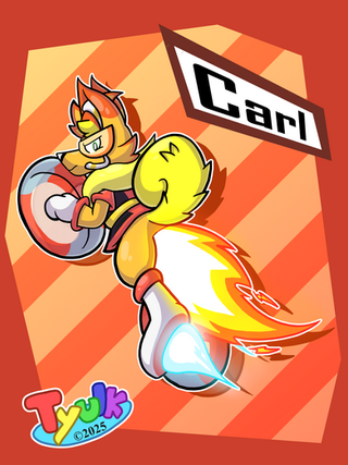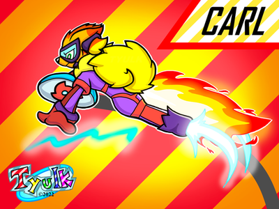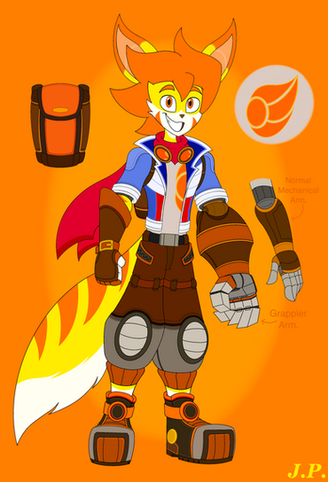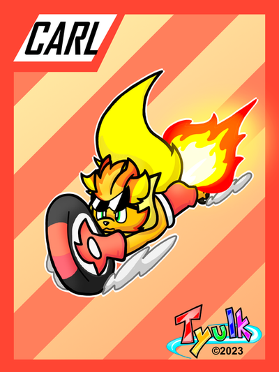 A fox fused with a motorcycle a long time ago. His butt produces a fiery exhaust that gives him a ton of speed, though he's very self-conscious about it. He's a known hero on the island.Carl belongs to me