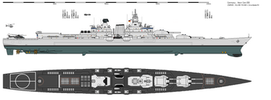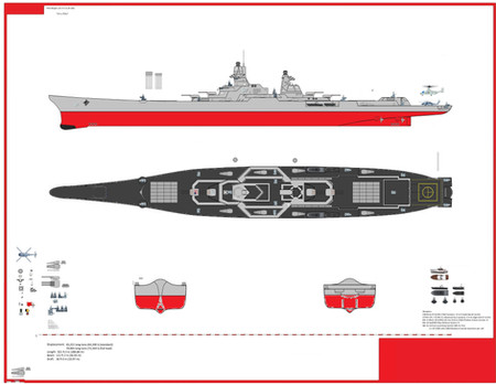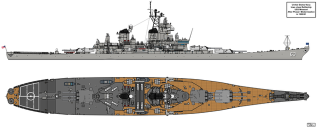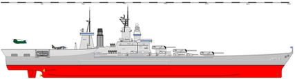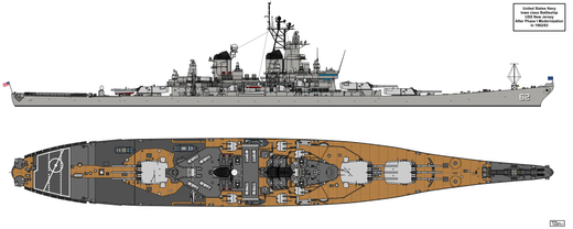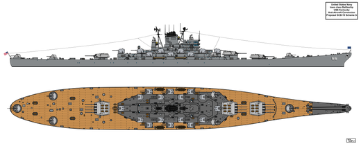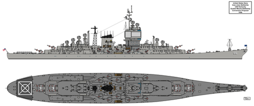 Troops and helicopter deck would had replaced the aft triple 16"/50 gun turret, all light and all but the forwardmost 5"/38 guns to be removed and one the remaining 16" gun turrets to be modified to fire the Mark 23 or W23 15-20 kiloton yield nuclear shell.