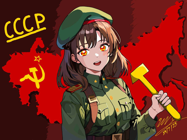 I drew this based on a hetalia MMD about the cold war history, and I think it would be interesting if there be a nyotalia version!
