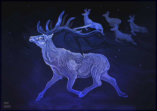Yeah I know it just reminds me of Harry's Patronus and the other "spirit" looking things look like that too. This art is beautiful btw :3
